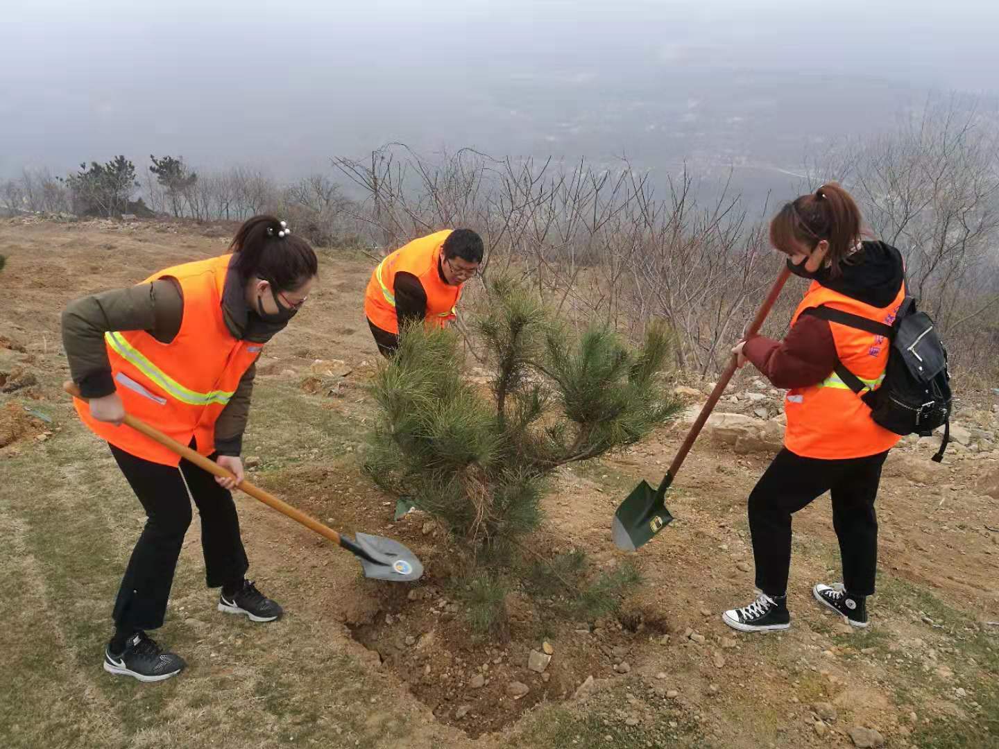 春風送暖,萬木吐綠。在南云臺林場植樹點,大家三五人一組,分工協(xié)作、配合默契,扶起樹苗、揮鍬鏟土、培實新土,齊心協(xié)力種下一株株樹苗。在市領導的帶動鼓舞下,現(xiàn)場干部職工干勁十足,一片紅火的勞動場景。一陣忙碌之后,2600余棵新栽苗木迎風挺立,錯落有致,為云臺山景區(qū)增添勃勃生機。