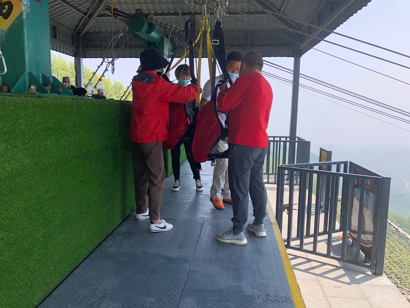 一是疫情防控不松懈,合理儲(chǔ)備防疫物資,每天對員工進(jìn)行體溫檢測,車輛使用前后進(jìn)行消毒,并根據(jù)當(dāng)天人流量多次對滑索項(xiàng)目經(jīng)營范圍內(nèi)游客等候區(qū)、站房、設(shè)備等進(jìn)行衛(wèi)生清潔和消毒,建立防疫相關(guān)臺(tái)賬,做到有據(jù)可查、有跡可循;在滑索入口,通過提示牌的方式引導(dǎo)游客自覺佩戴口罩,在游客排隊(duì)等候區(qū)域標(biāo)畫出1.5米間距的警示線,引導(dǎo)游客保持距離,遵守公共秩序,積極配合防控工作。